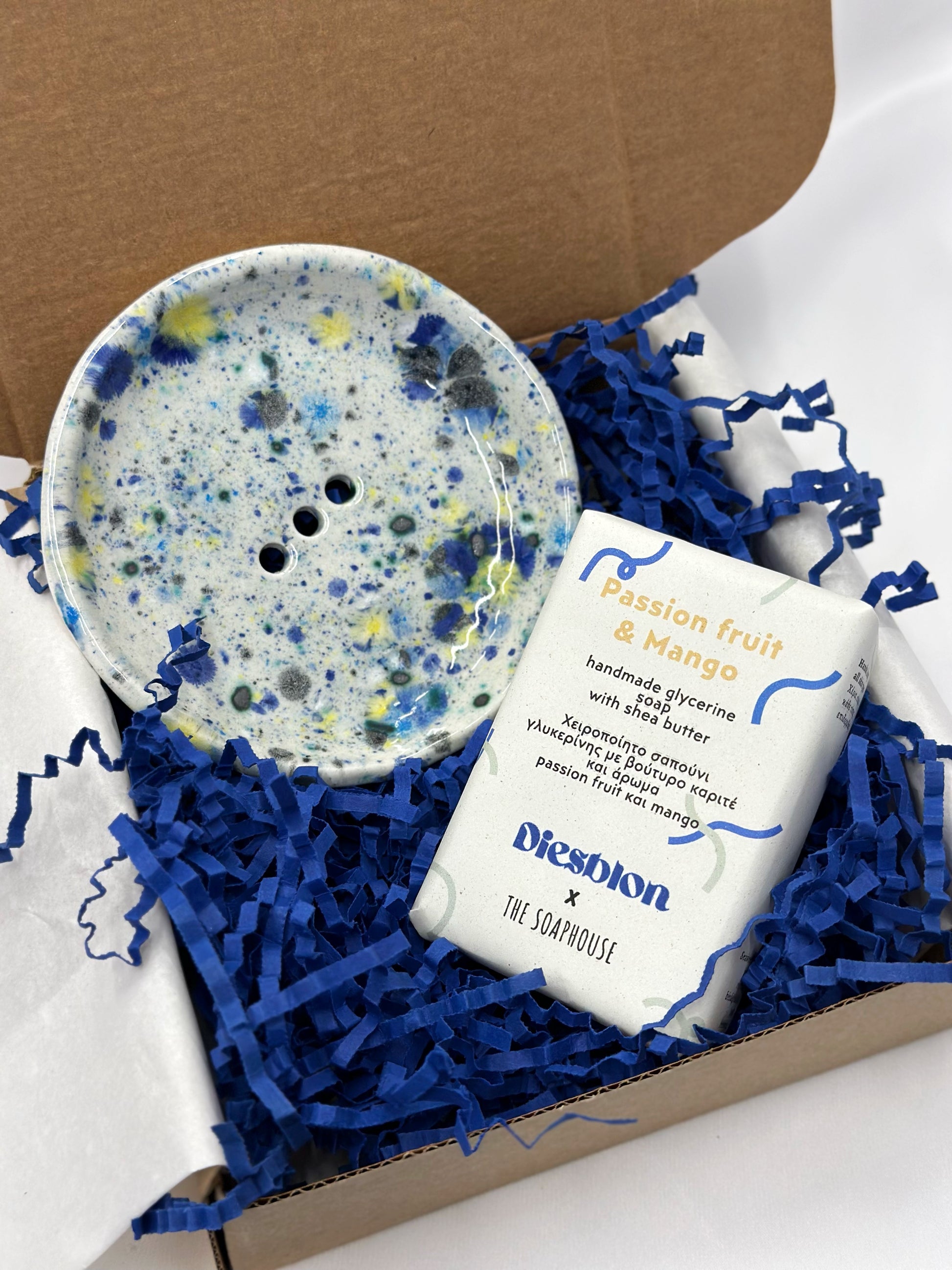 μαζί με την κεραμική μας σαπουνοθήκη φτιαγμένα και τα δύο με αγάπη και φροντίδα.